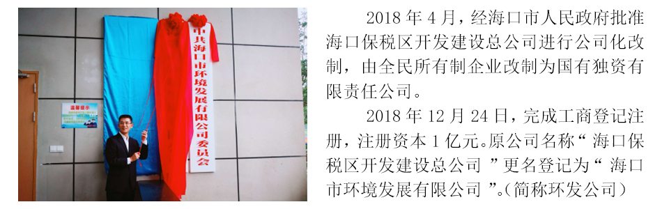 海口市環境發展有限公司是海口市屬國有獨資有限責任公司,于2018年12月正式掛牌運營,注冊資本1億元,由1993年12月成立的??诒6悈^開發建設總公司進行公司化改制而成,核心業務為環境環衛產業投資和運營、資產運營和管理,培育業務為工程管理
